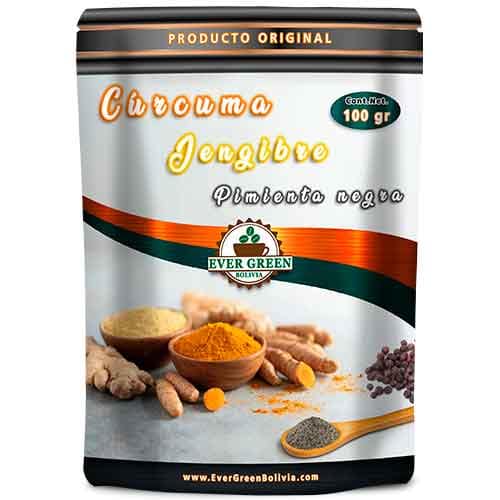 Una combinación con muchos beneficios para la salud. Mejora el sistema inmunológico, la memoria y previene el envejecimiento. El jengibre ayuda a reducir la inflamación y el dolor, la pimienta negra favorece la absorción y biodisponibilidad de todos los nutrientes y antioxidantes de la cúrcuma.