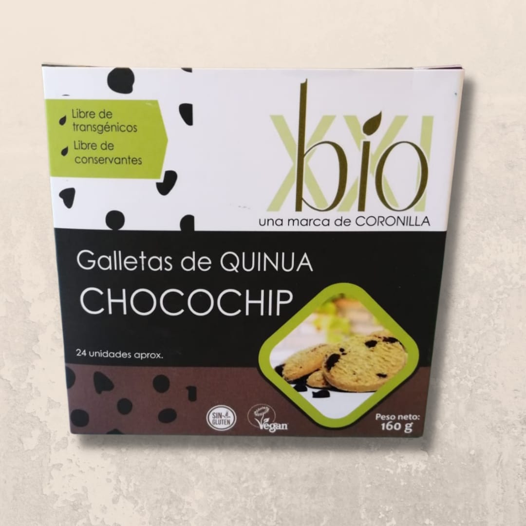 Galletas de quinua con chispas de chocolate, este producto es vegano y libre de gluten.
