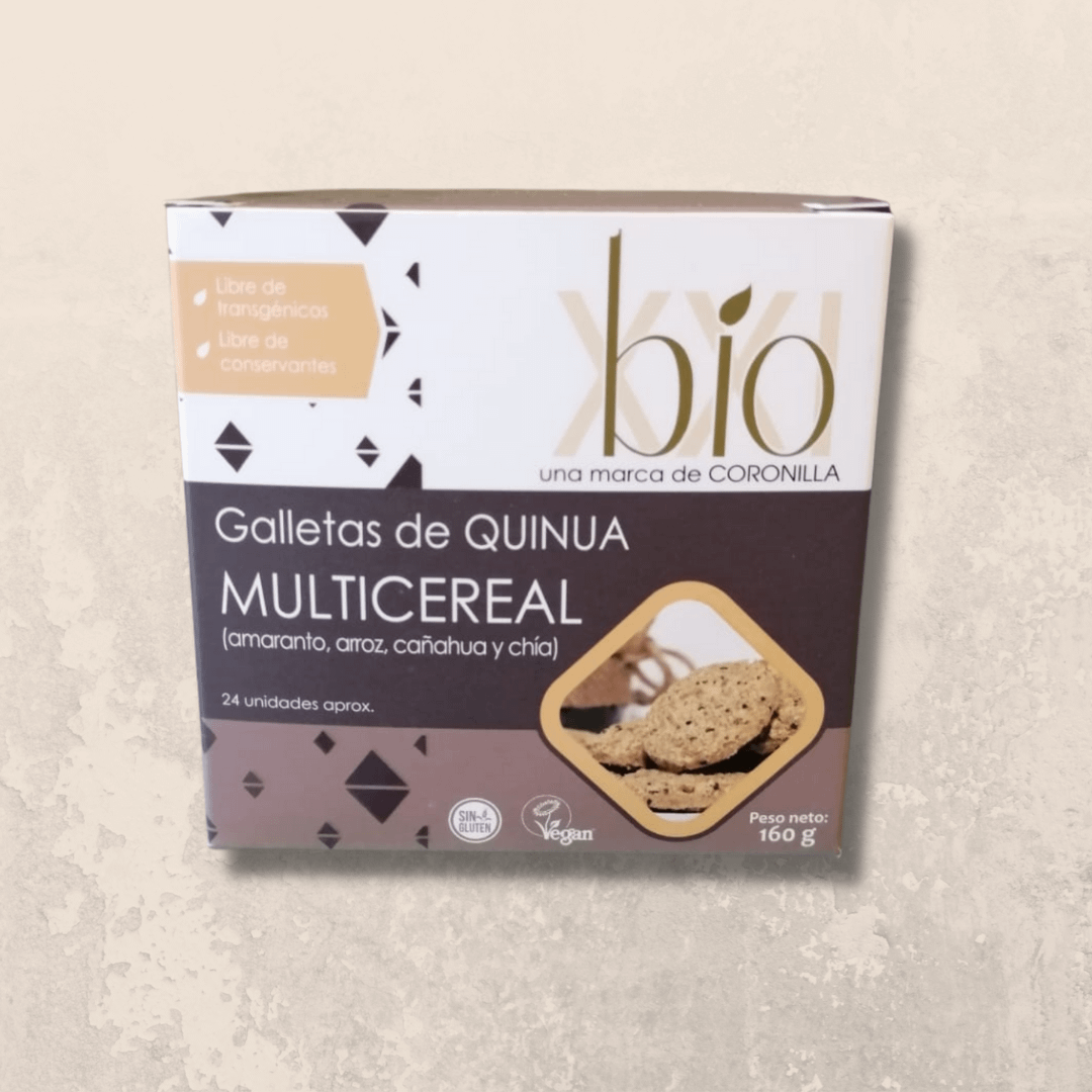Galletas de quinua, amaranto, arroz, cañahua y chía, este producto es vegano y libre de gluten.