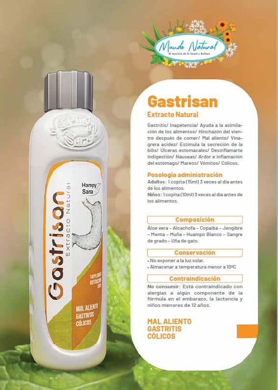 Selección de extractos naturales que ayudan a combatir la gastritis, cólicos, vinagrera, acidez, indigestión, náuseas y mal aliento. Evita la hinchazón del vientre después de los alimentos, ulceras estomacales y ardor e inflamación del estómago.