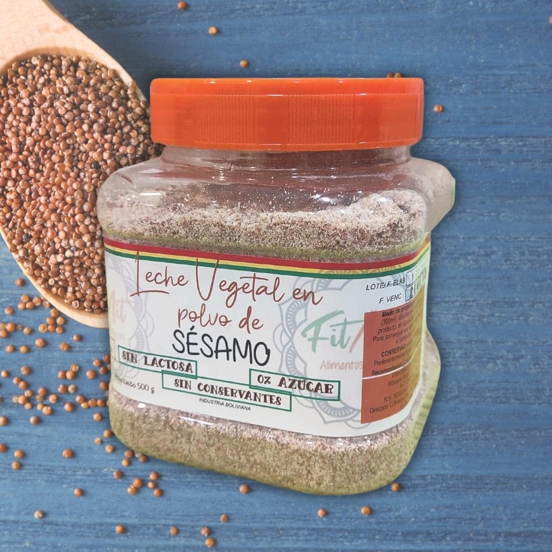 Leche vegetal en polvo de semilla de sésamo deshidratada e instantaneizada, sin lactosa, sin conservantes, 0% azúcar.
