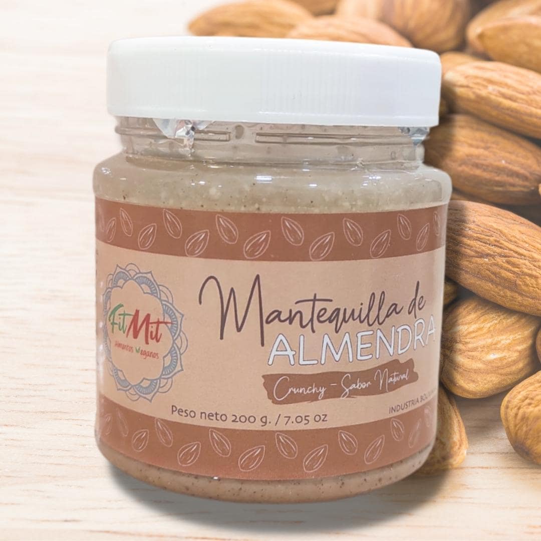 Mantequilla de almendra crunchy, sabor natural. Producto 100% natural, sin gluten, vegano.